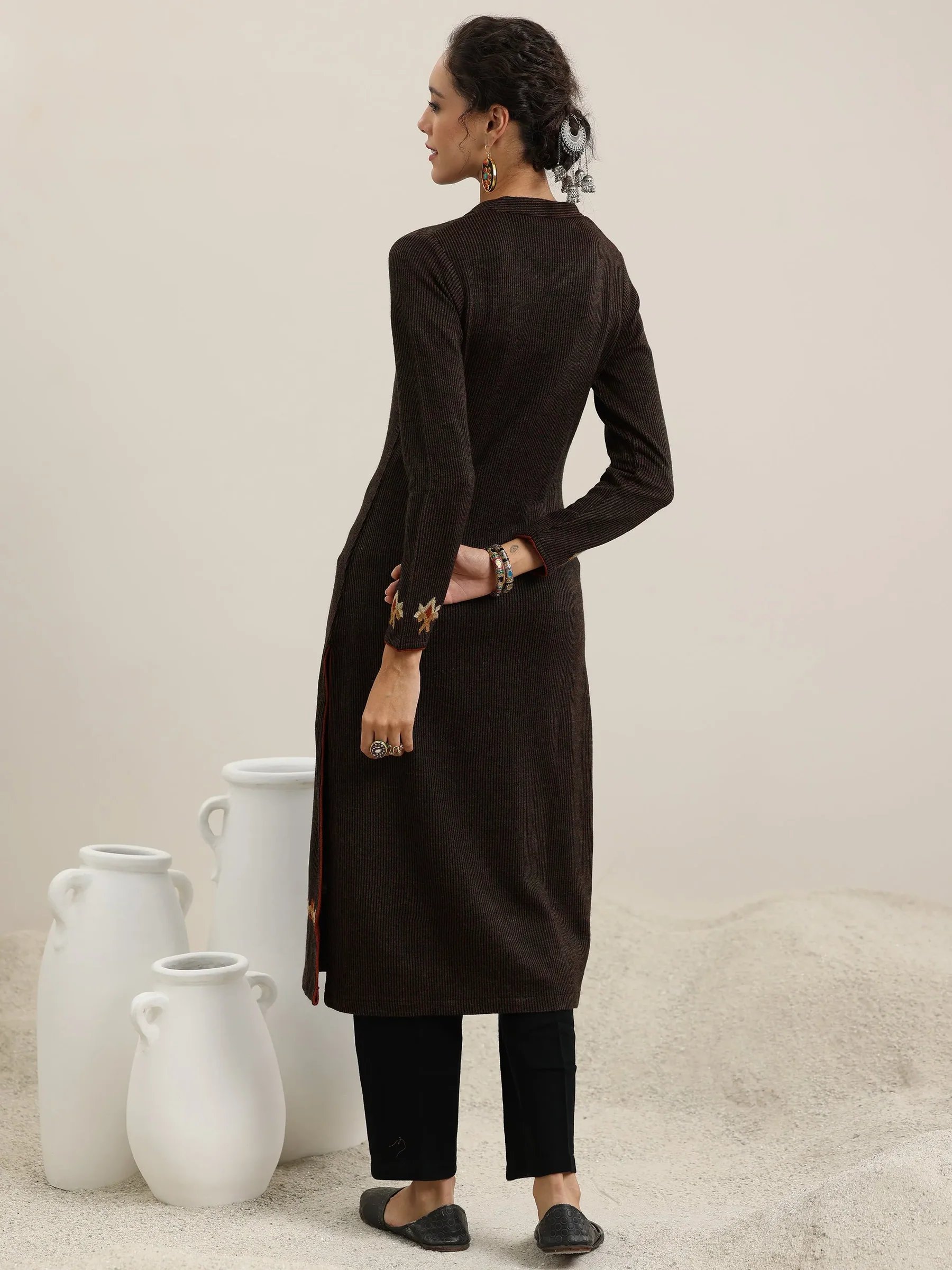 Black Embroidered Wool Straight Kurta