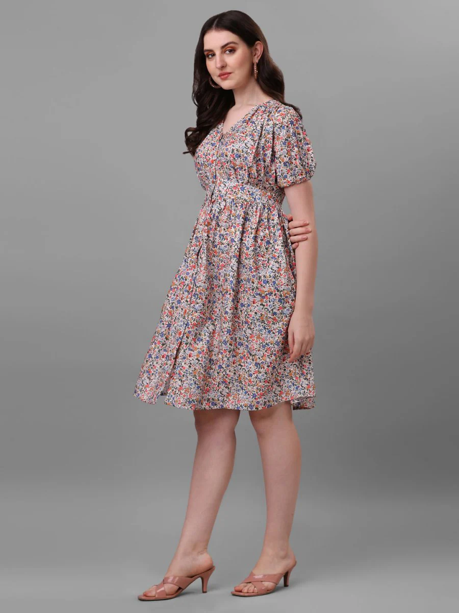 DRESSES FOR WOMEN WESTERN WEAR DOTTED MULTI-COLOR DRESS.