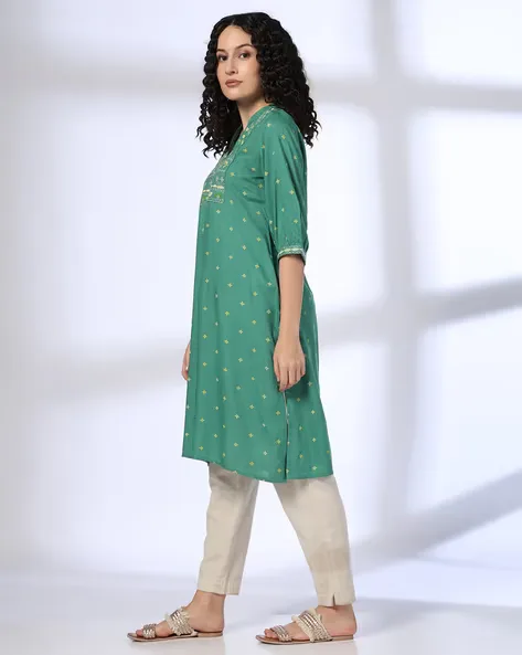 Women Embroidered Straight Kurta & Pants